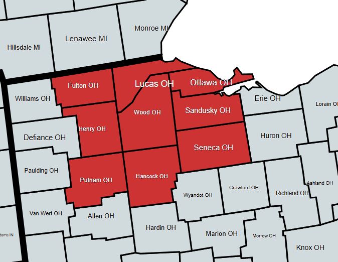 Counties served in the Toledo area